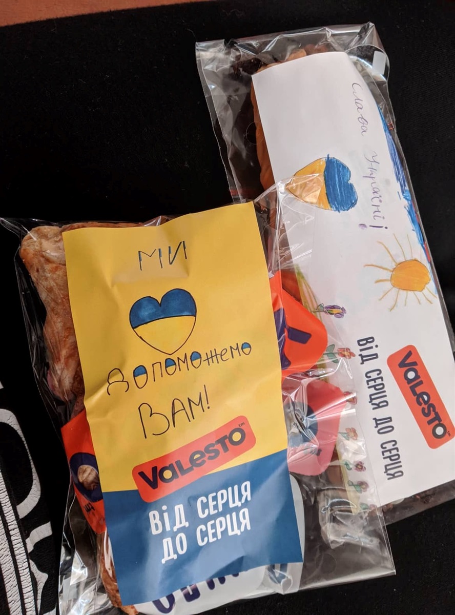 В Одесі нас зустріли волонтери, провели у залу підвищеного комфорту, там були безкоштовні смаколики, випічка з патріотичними написами.
